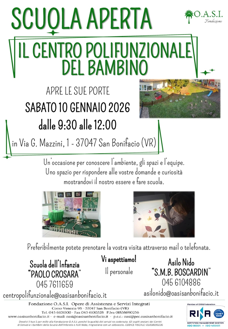 Racchiude la descrizione dell'itinerario formativo con il quale la Comunità Educativa della Scuola dell’Infanzia "Paolo Crosara" esprime il proprio impegno di servizio all’infanzia.